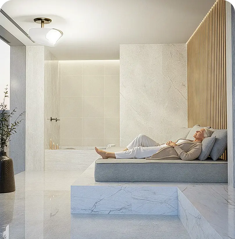 Calibrated UV light for vitamin D and infrared light create a sensory experience that promotes relaxation, supports recovery, and aligns the body’s rhythm – positioning it as a standout in modern wellness spaces.